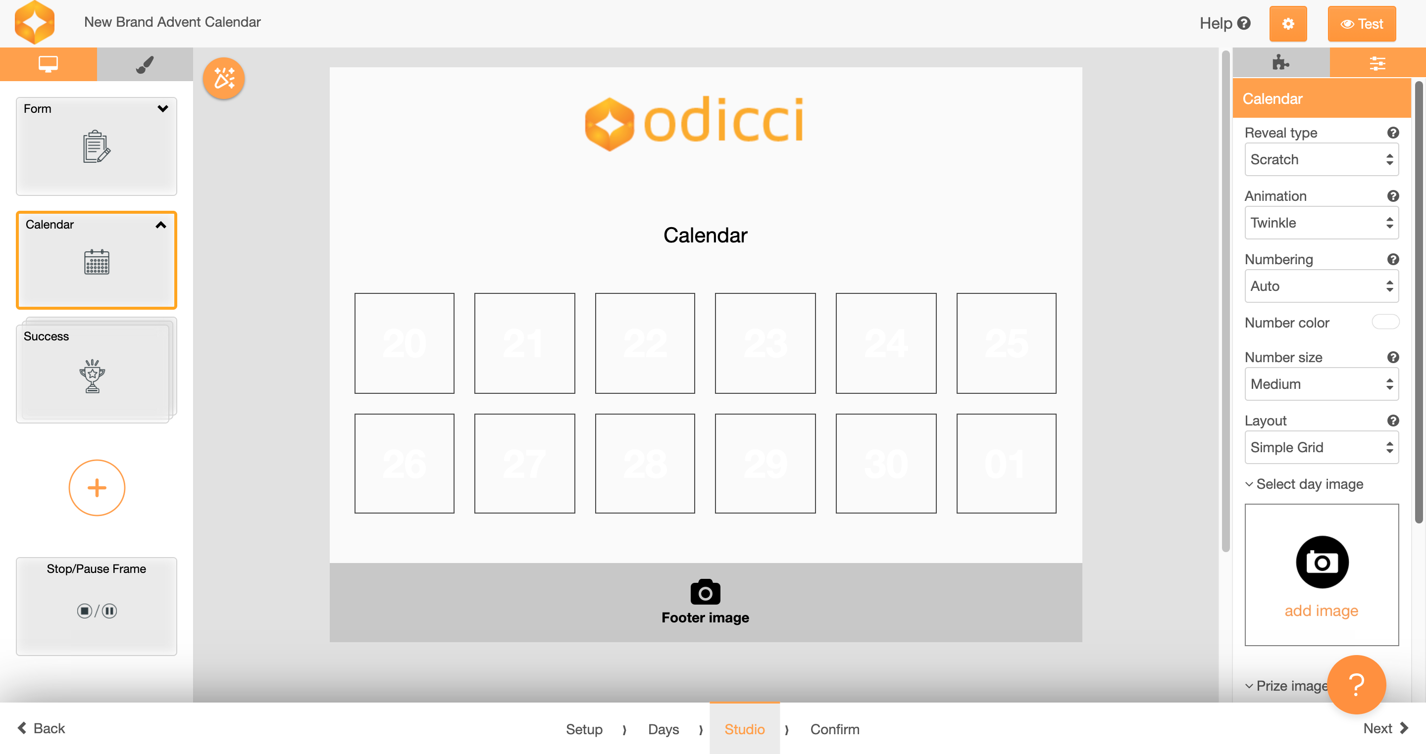 Once you have finalised the look of your Calendar page, you can now move on to the Success Frames. A success frame is the last frame of your experience/ the prize frame.