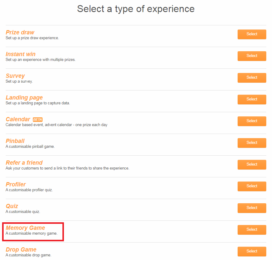 A customisable memory game can be used for capturing customer data during events or from consumer goods on packaging for example. Below is an example of a Memory Game.