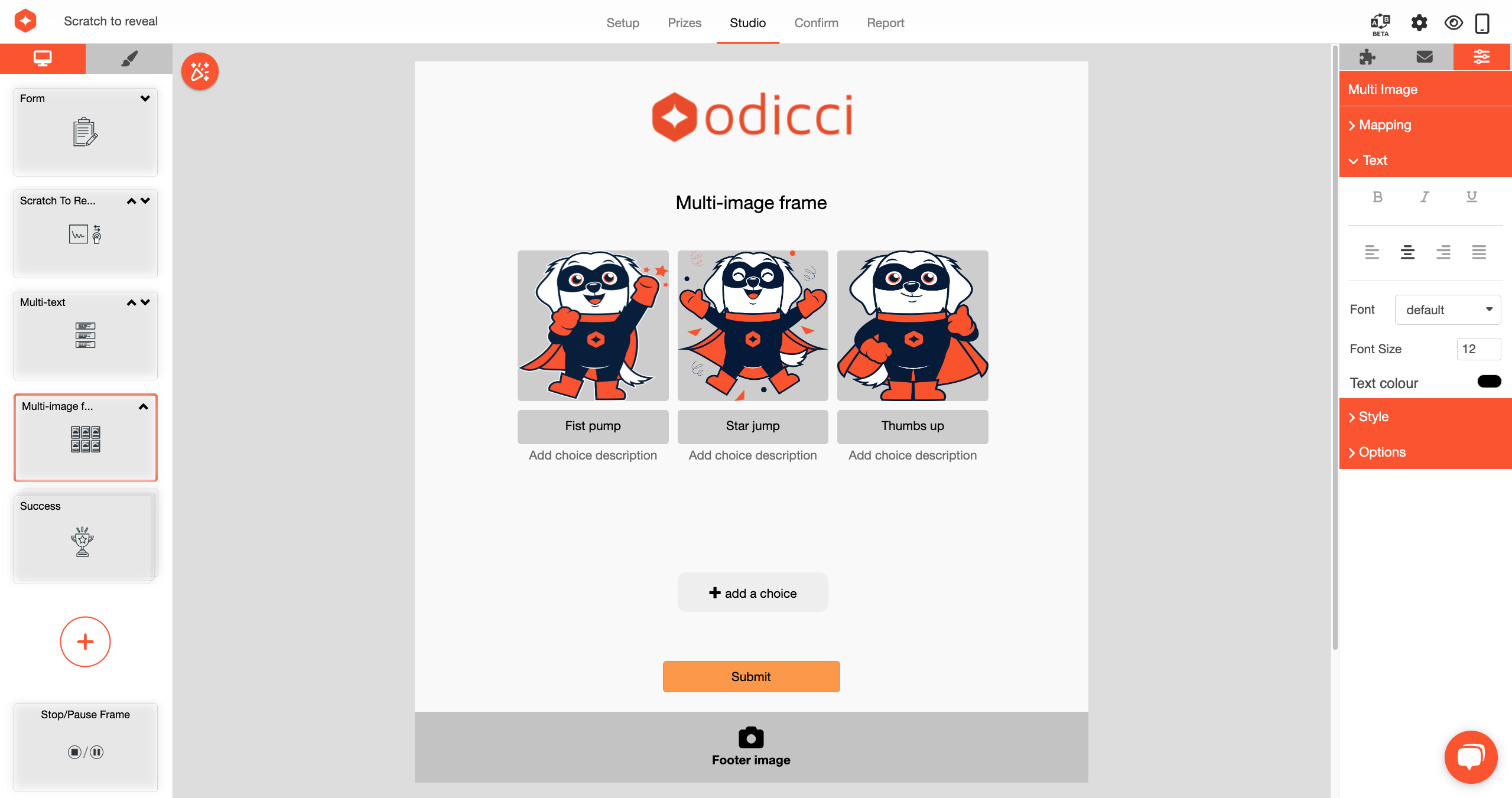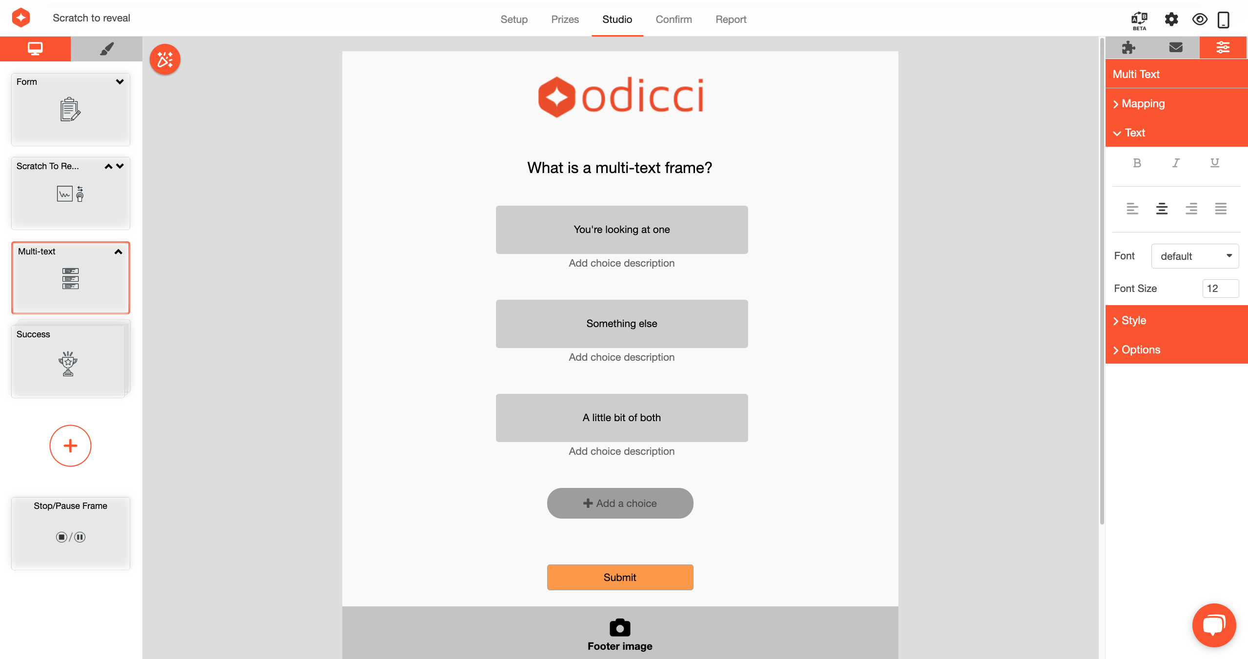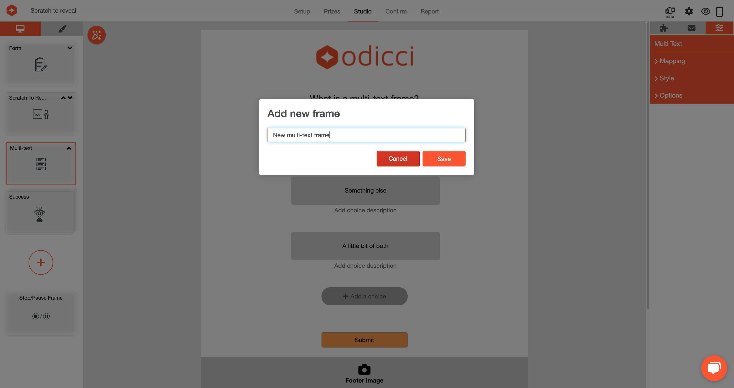 Multi-text and multi-image frames can be used within experiences to either capture data for personalisation, as part of an interactive quiz or a combination of both.