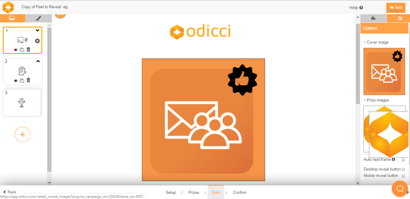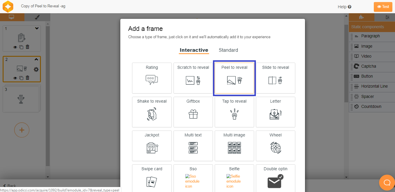 Within the microsite builder under > BUILD you can then directly add the form field To add the Peel to reveal, click Add a new frame and select the Peel to reveal.