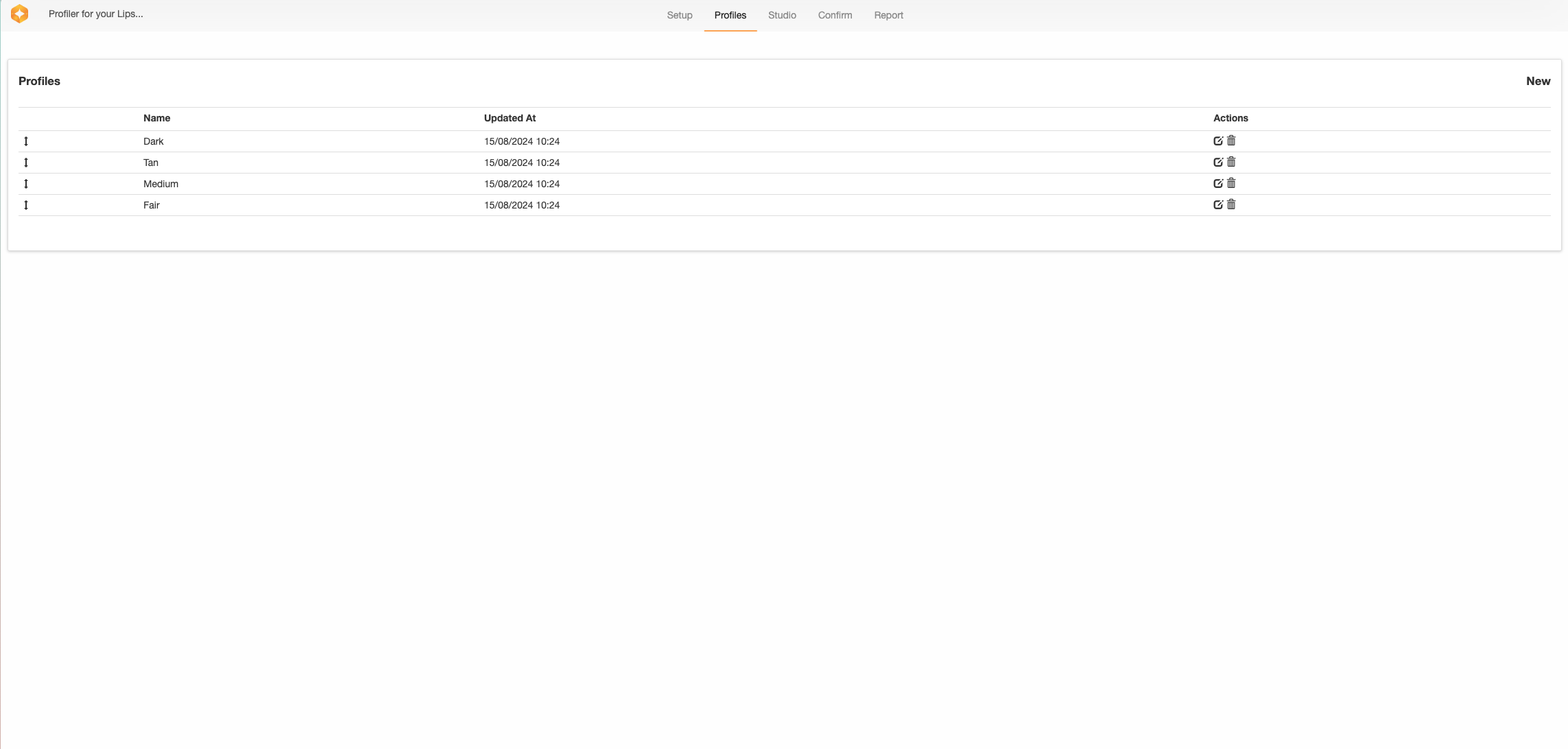 Here you can see a full dashboard of all the different profiles that have been created, to edit it you must click the edit button to the left of the delete button.