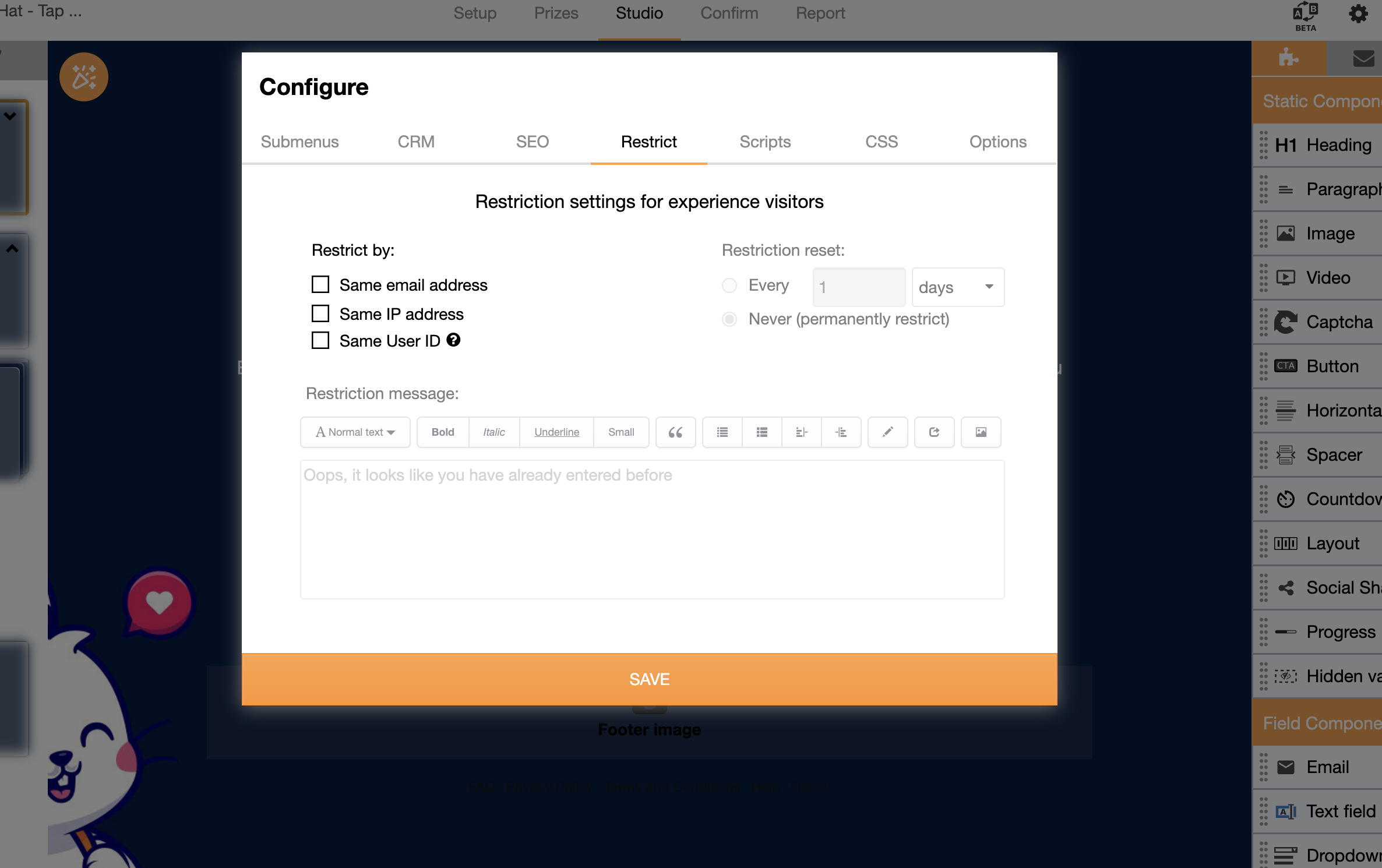 In this guide, you will learn how to use the Odicci Restriction feature with any of your experiences.