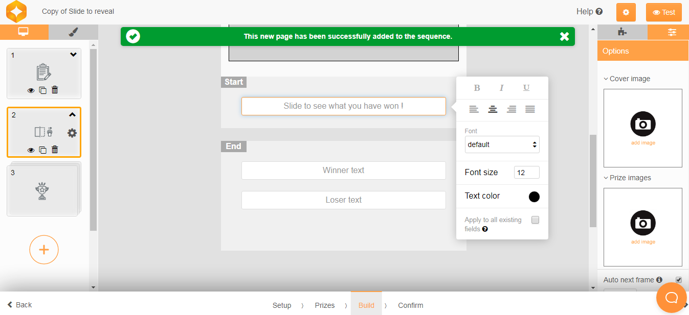 End - Enter the winner and loser text which should be displayed after sliding the image.