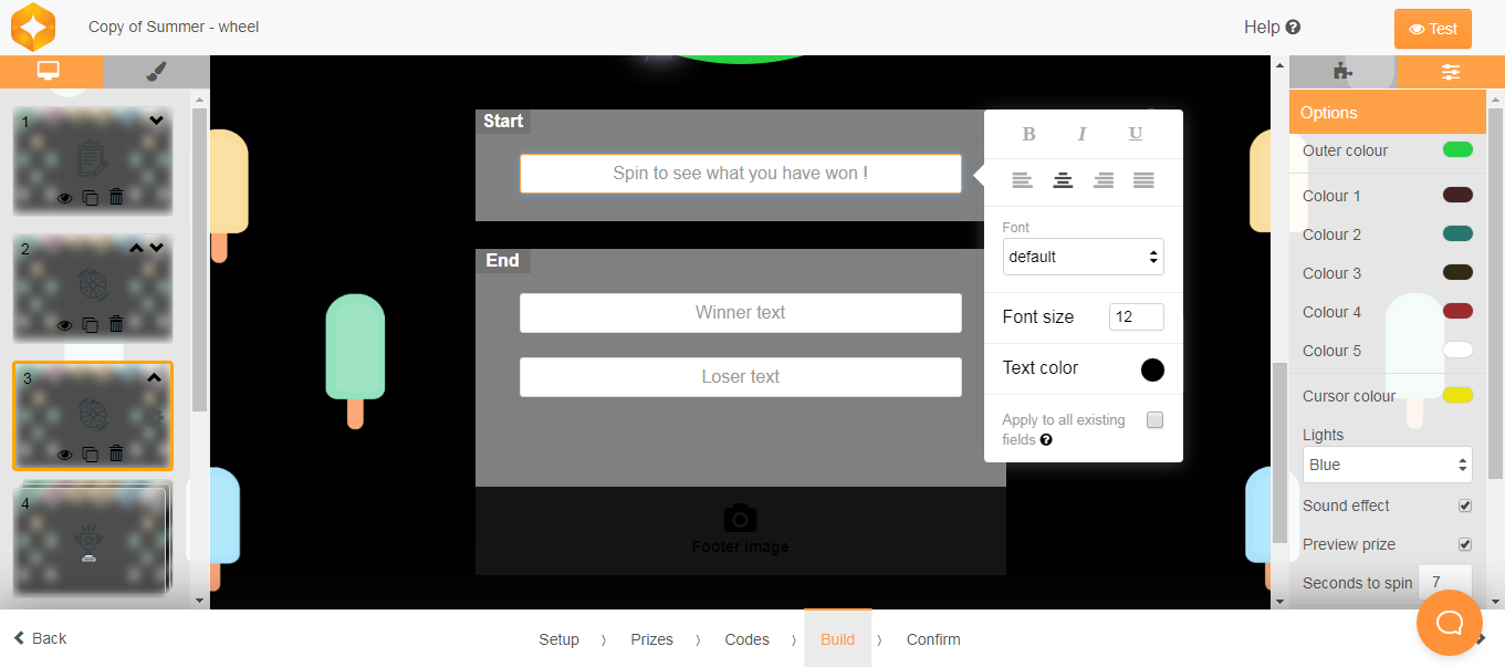 Add a Colour - Click this to add colours for different prizes in the wheel, which will create Colour 1, Colour 2 etc.